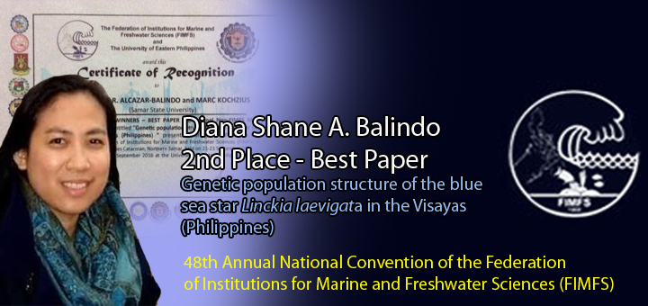 Diana Shane A. Balindo study on blue star’s genetic population structure won as 2nd Place – Best Paper during the 48th Annual National Convention of the Federation of Institutions for Marine and Freshwater Sciences (FIMFS). Ms. Balndo is a College of Education faculty competed with other researchers who came from institutions not member of FIMFS.