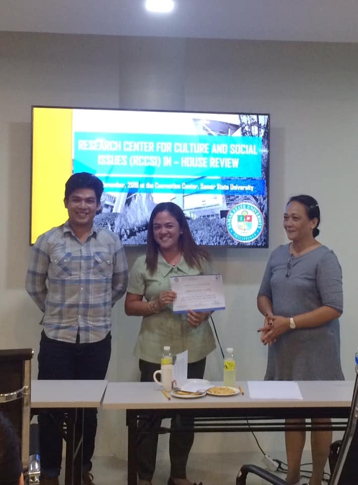 Mrs. Maria Rubi M. Parrocho, RCCSI Director, invited experts to perch as evaluators: Prof. Dakila Yee and Prof. Miah Maye Pormon from the University of the Philippines Visayas Tacloban College (UPVTC) and Prof. Jonas P. Villas from Leyte Normal University.