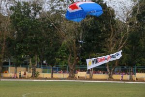 The breathtaking aerial demonstration was participated by the members of the PNP skydiver team who fearlessly showed their skills and jumped off from a plane, making a massive statement of how ‘SCUAA VIII is great’.
