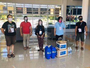 Dr. Cardoso turned over two containers of hand sanitizer (5 gallons per container), two gallons of alcohol, and 50 pieces of face shield to the City Mayor of Catbalogan, Hon. Dexter Uy yesterday, March 30, at the SSU Convention Center.