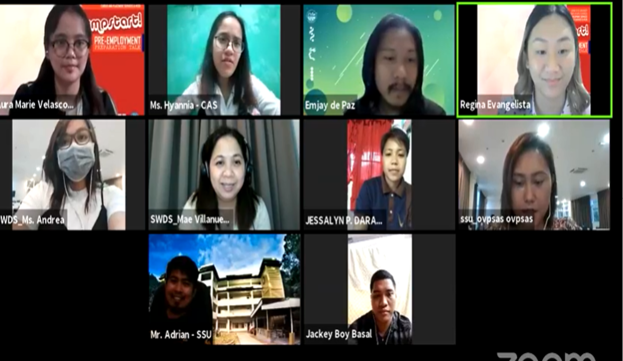 CATBALOGAN CITY – Samar State University (SSU) through the Student Welfare and Development Services (SWDS) conducted its first virtual Pre-Employment Preparation (PEP) workshop via Zoom on April 14 (21).