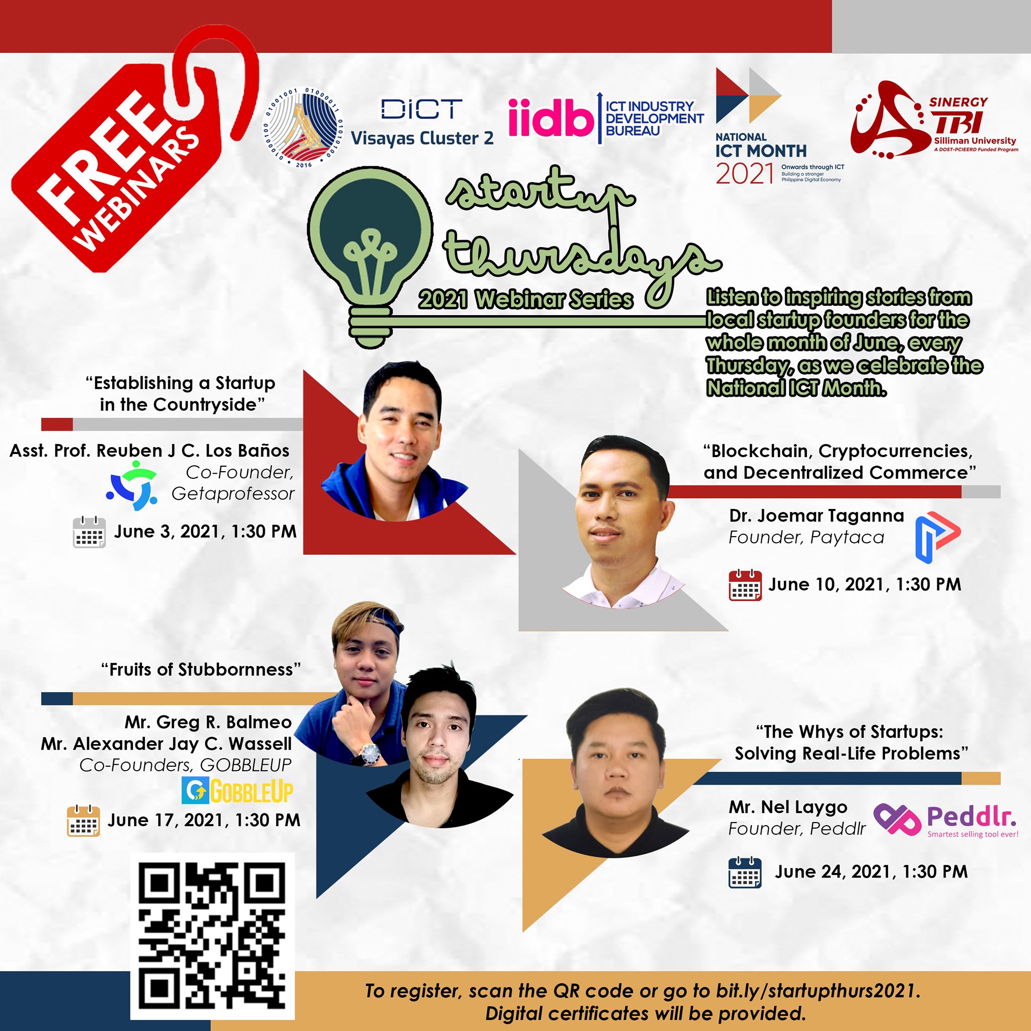 The webinar series is the brainchild of Department of Information and Communications Technology (DICT) Visayas Cluster 2 – ICT Industry Development Bureau (IIDB) in partnership with Silliman University Technology Business Incubation in celebration of the National ICT Month.