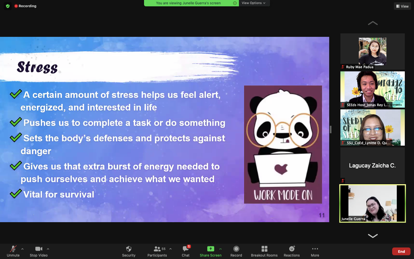 CATBALOGAN CITY – Almost a hundred Bachelor of Elementary Education (BEED) students of Samar State University (SSU) joined the virtual recollection dubbed as “SEEDING of SEEds” on October 6 (21) via Zoom conferencing.