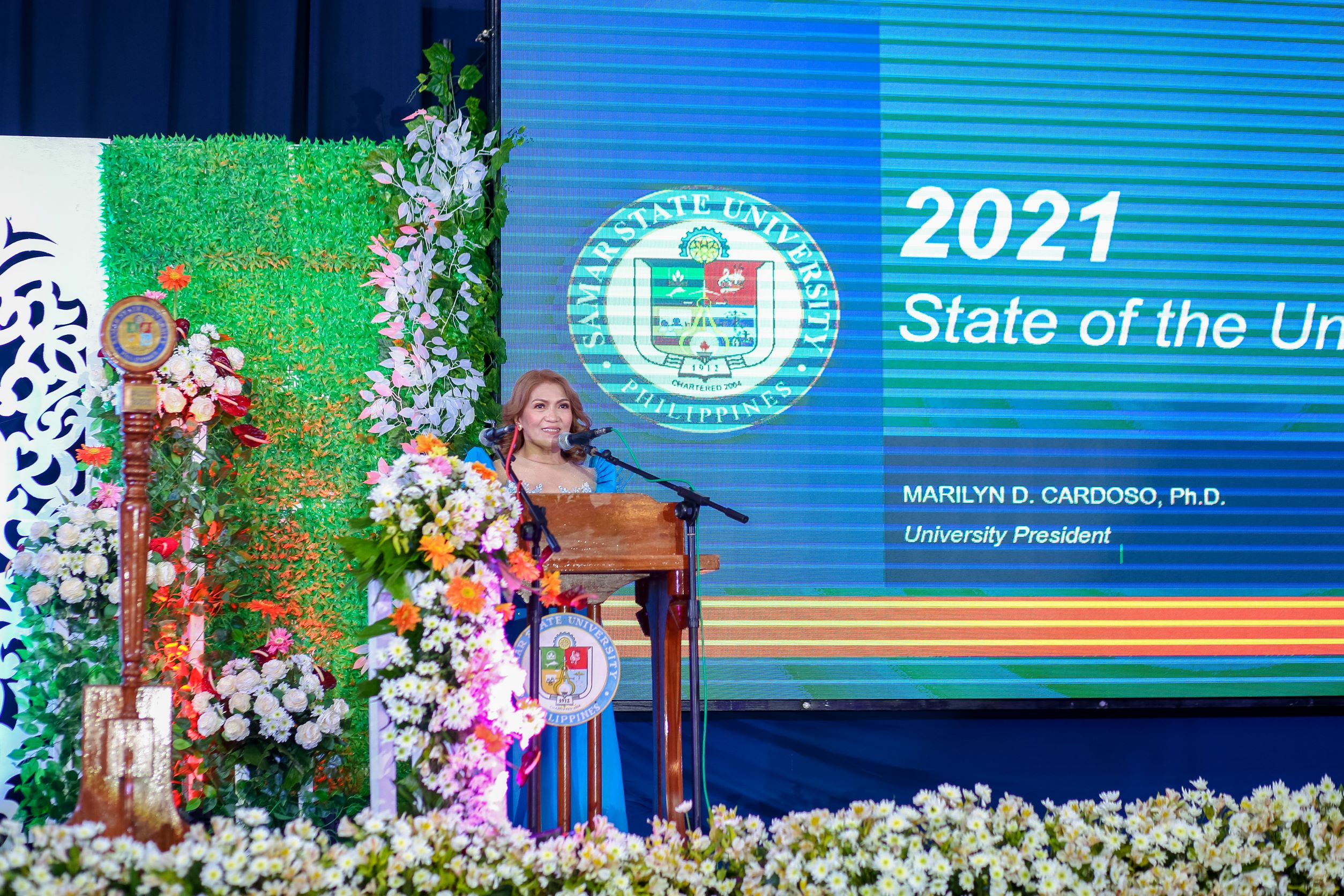 CATBALOGAN CITY─ Samar State University (SSU) President, Dr. Marilyn D. Cardoso, delivered her 5th State of the University Address (SUA) via a blended platform─ limited face-to-face, zoom web conferencing, and facebook live streaming─ on November 23 (21).