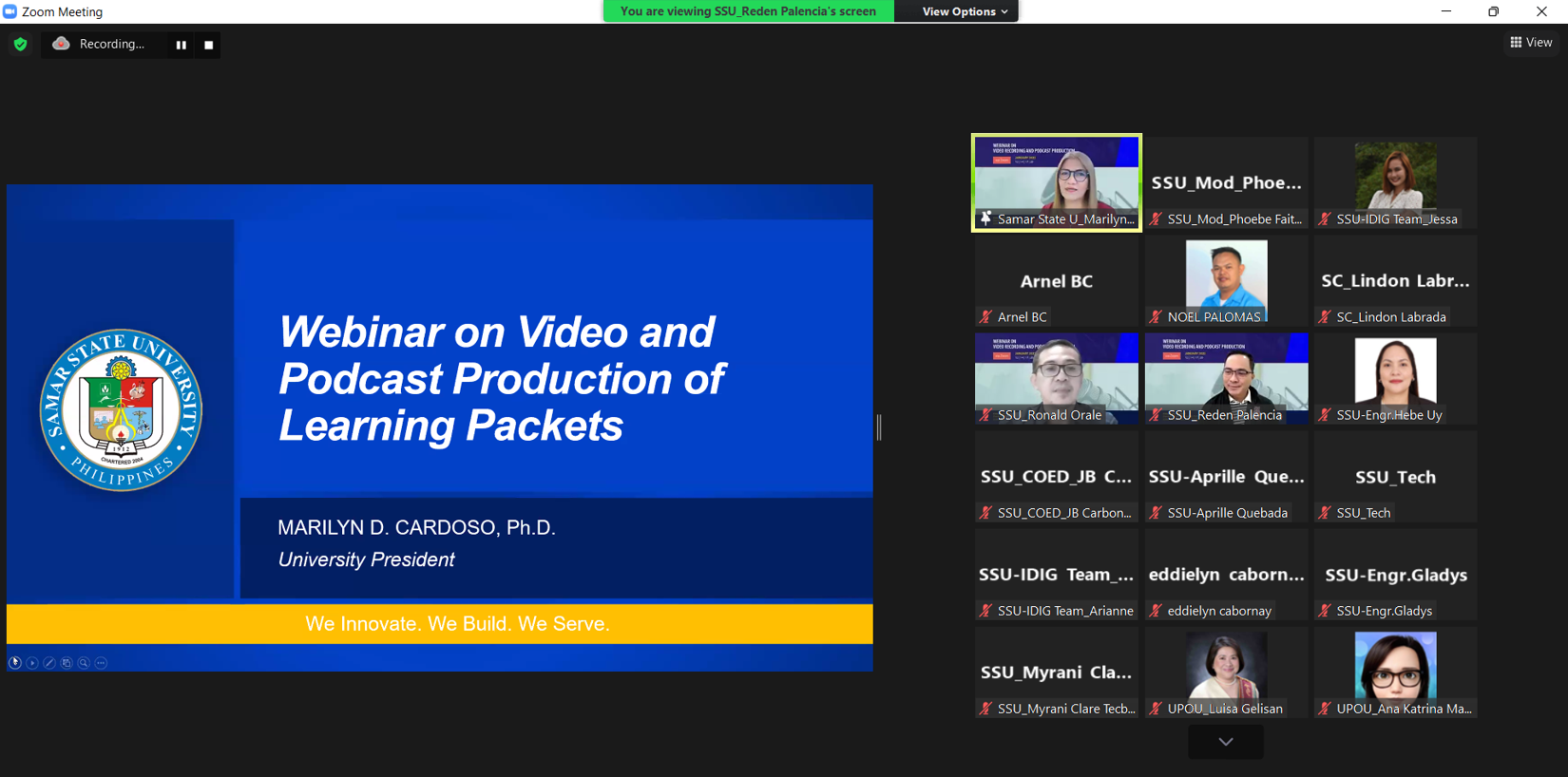 CATBALOGAN CITY – As part of the Commission on Higher Education-Institutional Development and Innovation Grants (CHED-IDIG) funded project titled “Enhancement of SSU’s Learning Management System (LMS)”, the Webinar on Video and Podcast Production of Learning Packets kicked off on January 12 (22) via Zoom Video Conferencing.