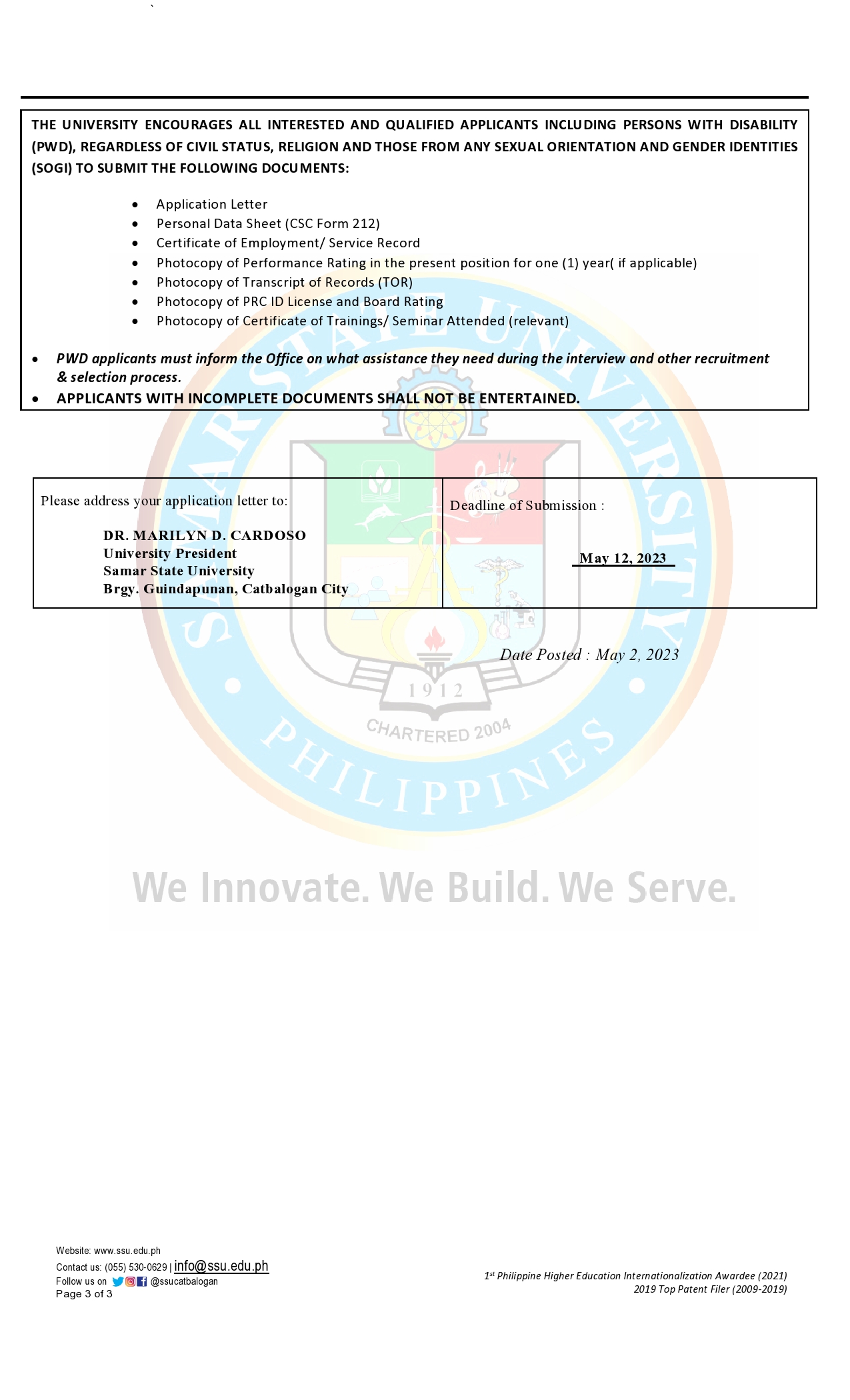 Notice of Vacant Positions (As of May 2, 2023)