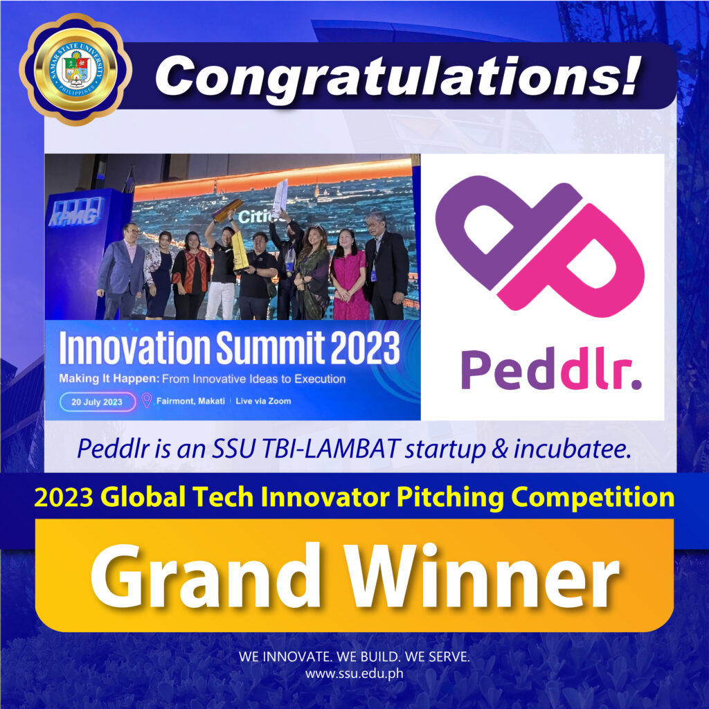 CATBALOGAN CITY─ Peddlr, an incubatee of Samar State University (SSU) Technology Business Incubator Local Alliance of Marine-Based Businesses and Food Technology (TBI-LAMBAT) was hailed as the Grand Winner in the Global Tech Innovator Pitching Competition, one of the highlights of the Innovation Summit 2023, held at the Fairmont Hotel Manila on July 20 (23).