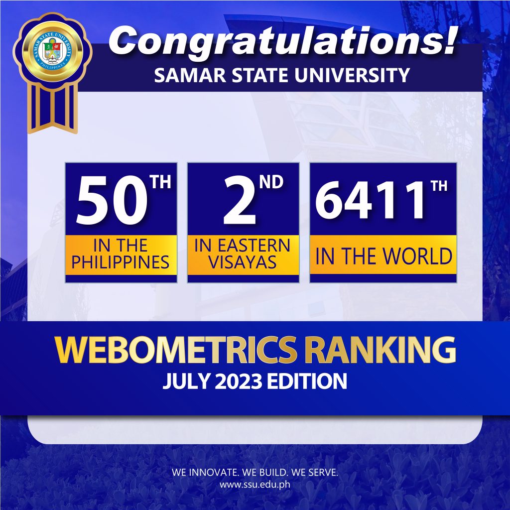 CATBALOGAN CITY—In comparison to this year’s January Webometrics ranking, Samar State University (SSU) made it to 3 notches higher in the July ranking as it landed at Rank 50th among Philippine Higher Education Institutions as announced by Webometrics Ranking of World Universities via their website.