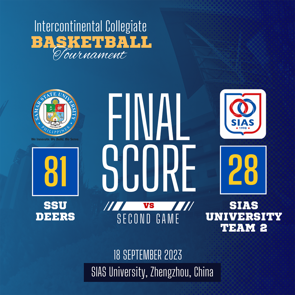 Zhengzhou, China─ The Samar State University (SSU) Deers remain undefeated holding off Sias University Team 2 81-28 in Game 2 yesterday, September 18 (23).