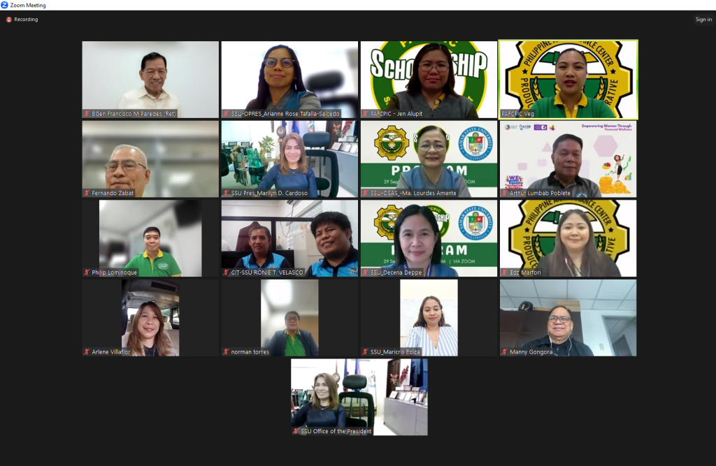 CATBALOGAN CITY─ In a strong partnership to provide scholarship to students, Samar State University (SSU) entered into a Memorandum of Agreement (MOA) with the Philippine Army Finance Center Producers Integrated Cooperative (PAFCPIC) on September 29 (23) via a virtual signing Ceremony.