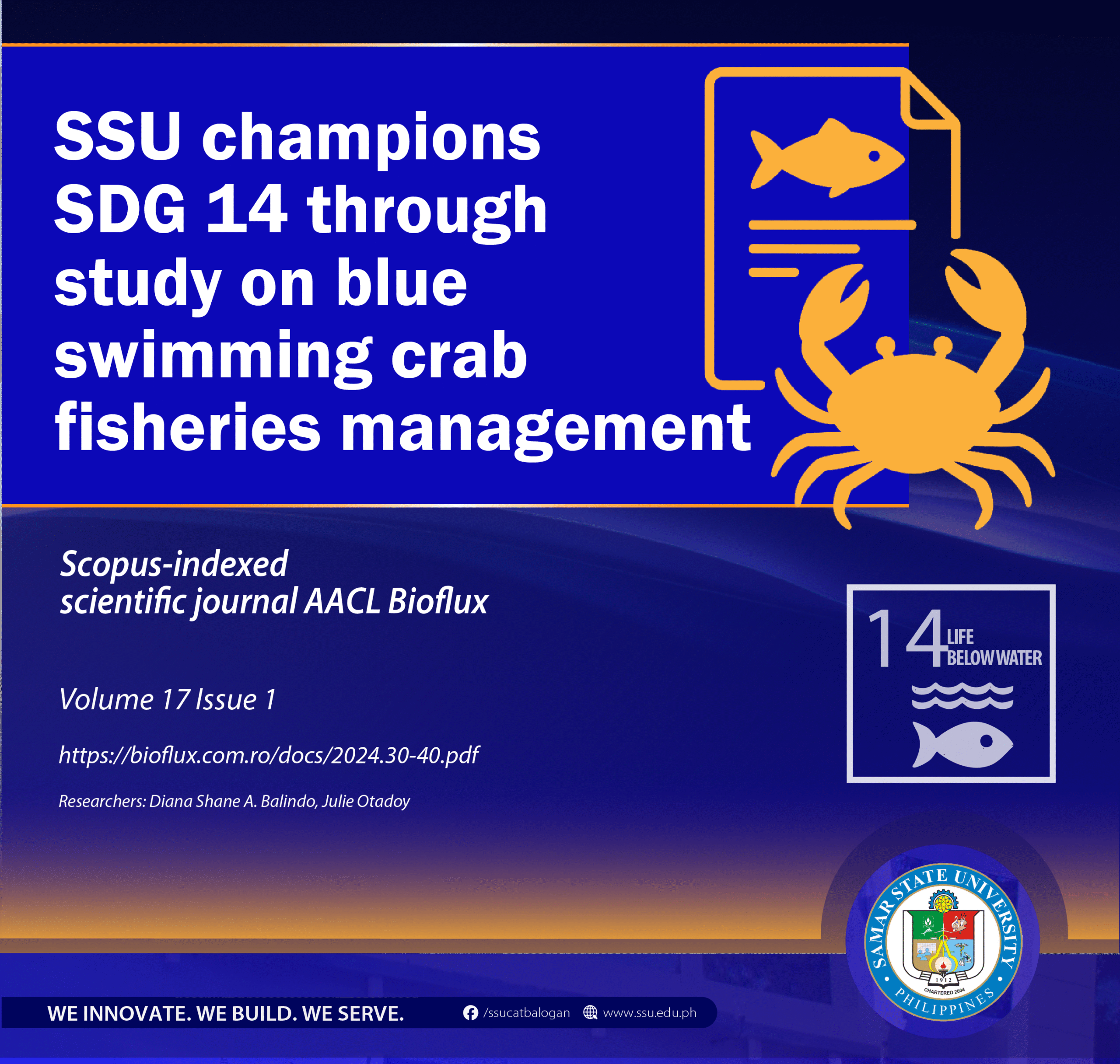 CATBALOGAN CITY, Philippines— In support of the global goal to conserve and sustain marine resources, Samar State University (SSU) champions the Sustainable Development Goal 14 (Life Below Water) through the study, “Evaluation of the local ecological knowledge and conservation attitudes of fishermen toward blue swimming crab fisheries management,” published in the Scopus-indexed scientific journal AACL Bioflux.