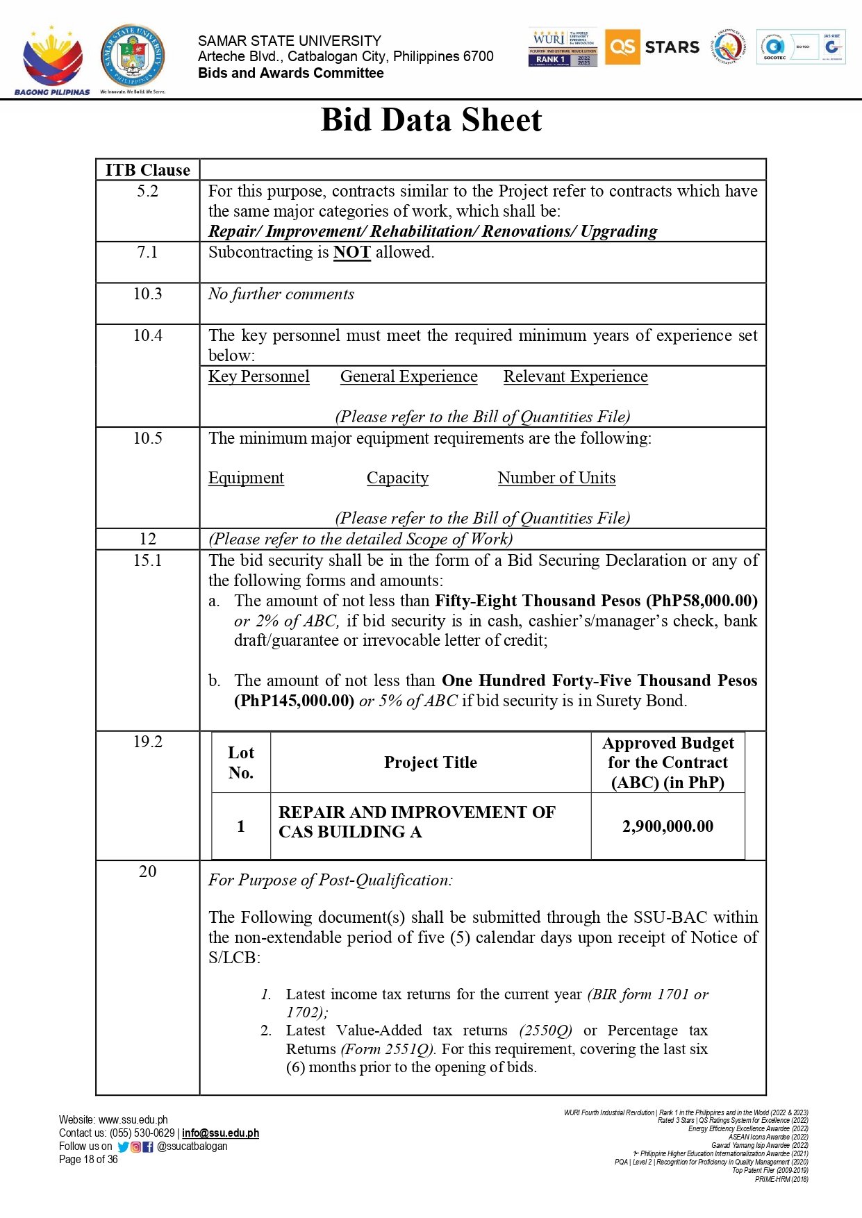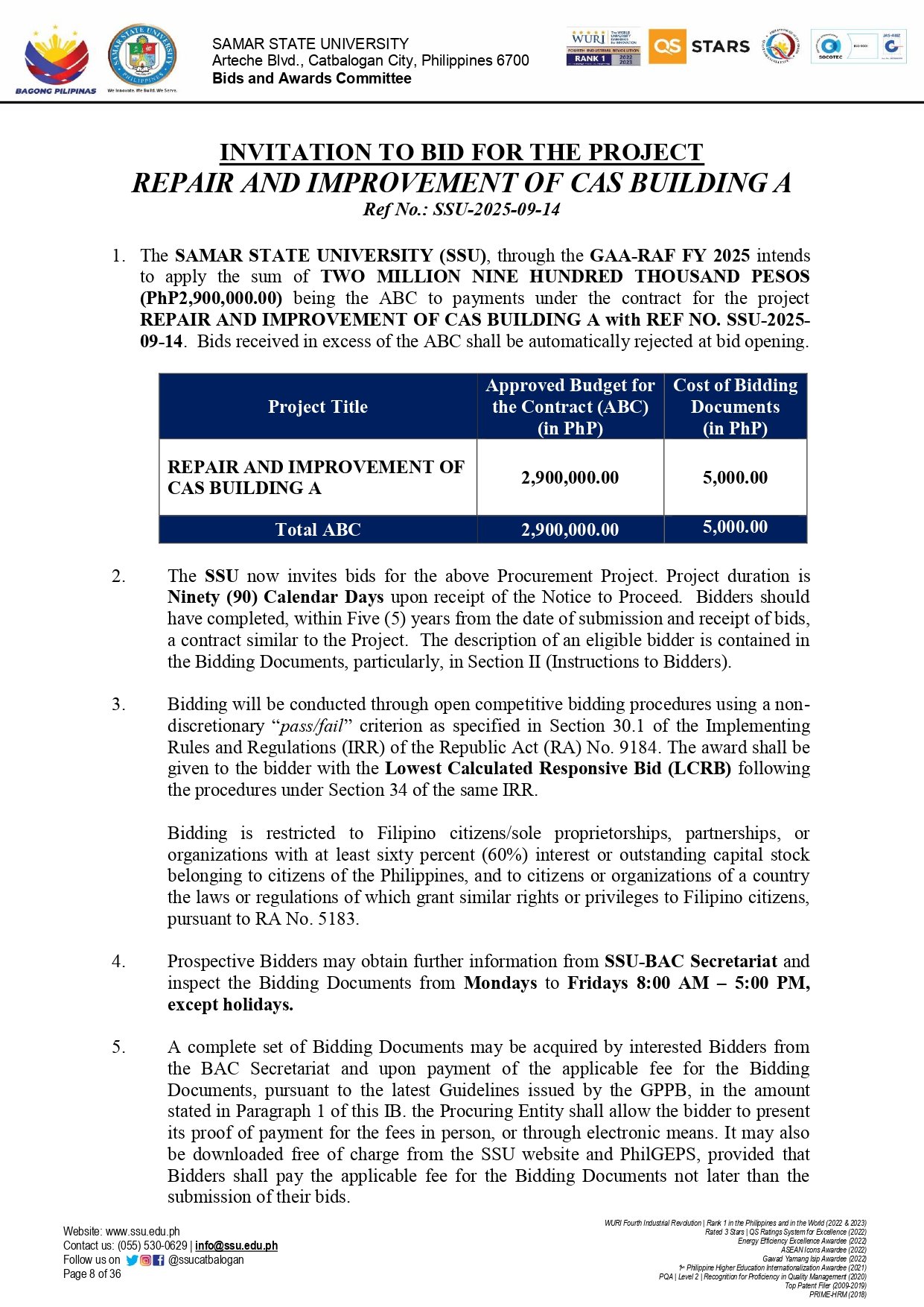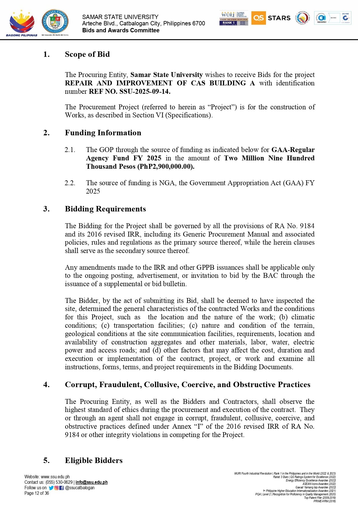 Invitation to Bid for the Repair and Improvement of CAS Building (Ref No.: SSU-2025-09-14)By Admin / September 29, 2025