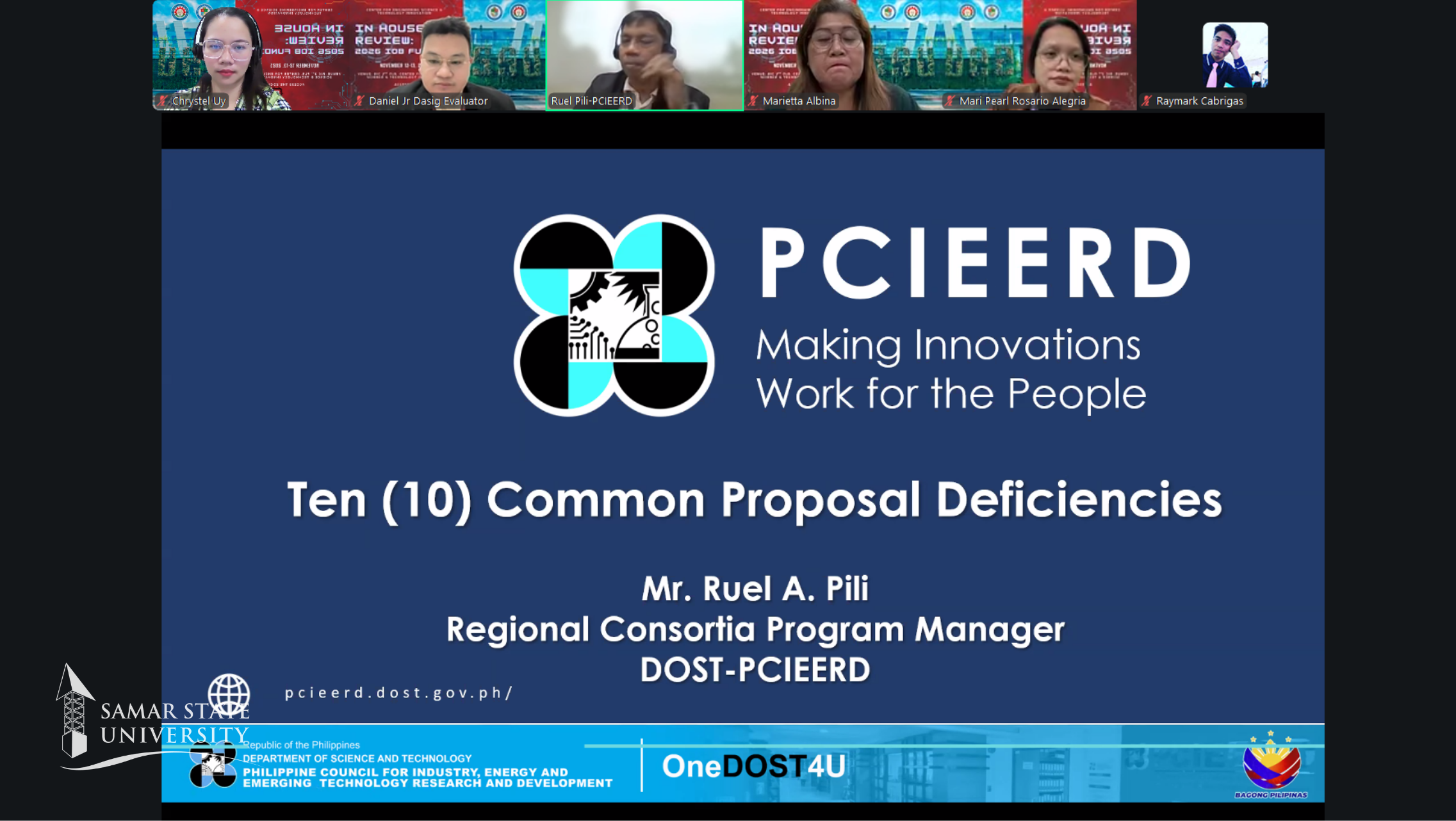 Four external evaluators served as panelists for the review, including Dr. John Glenn Ocaña, Regional Director of DOST Region VIII, Dr. Ruel A. Pili, Regional Consortia Coordinator of DOST-PCIEERD, Hon. Dr. Daniel Dasig Jr., Alumni Regent of the SSU Board of Regents, and Atty. Jose Buenagua, Chief Political Affairs Officer at the House of Representatives, representing Hon. Reynolds Michael Tan, Congressman of Samar’s 2nd District.