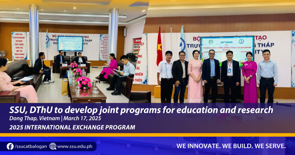 DONG THAP, Vietnam—Samar State University (SSU) of the Philippines and Dong Thap University (DThU) of Vietnam are currently staging the 2025 International Exchange Program from March 16 to 21, 2025, at DThU, Vietnam. Along with this student exchange initiative, representatives of both universities convened for a discussion on further potential collaborations between SSU and DThU.