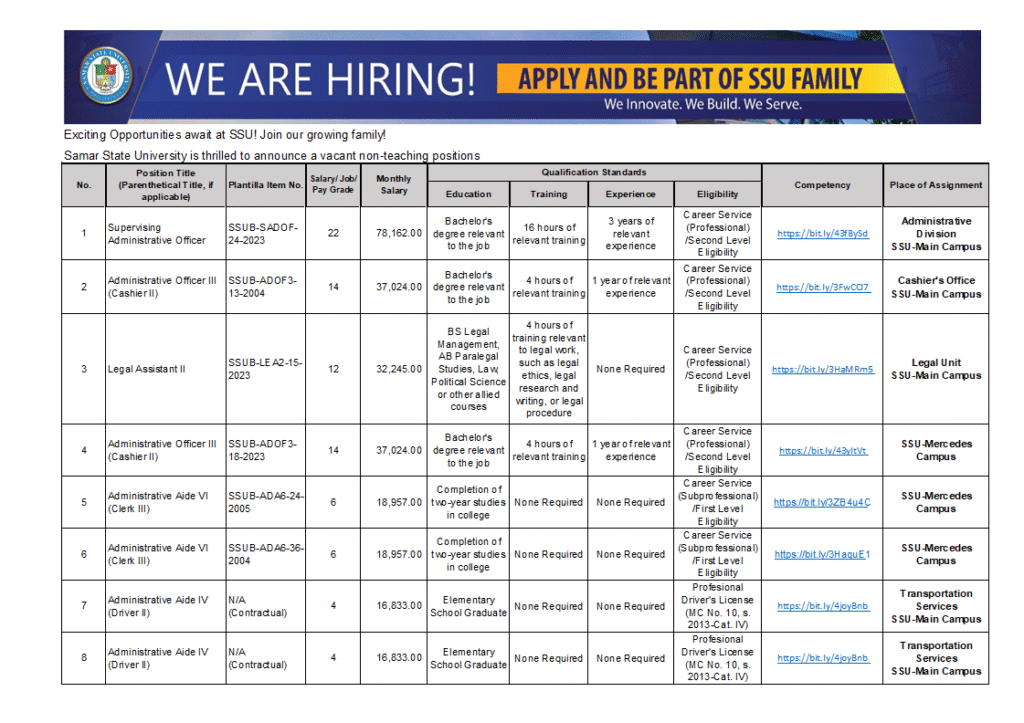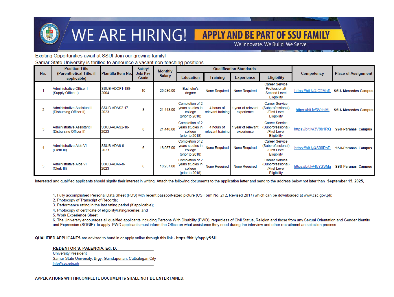 CALL FOR APPLICATIONS FOR VACANT POSITIONS (September 2, 2025)