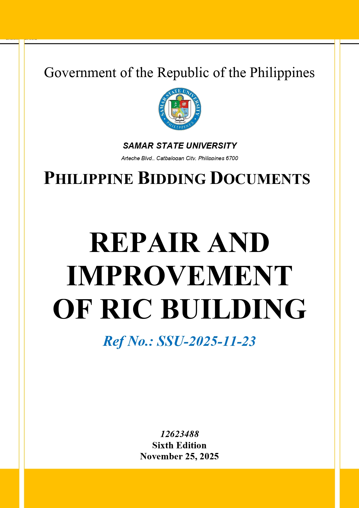 Invitation to Bid for the Repair and Improvement of SSU RIC Building (Ref No: SSU-2025-11-23) Leave a Comment / Bids Notices / Admin Invitation to Bid for the Repair and Improvement of SSU RIC Building (Ref No: SSU-2025-11-23) Read More »