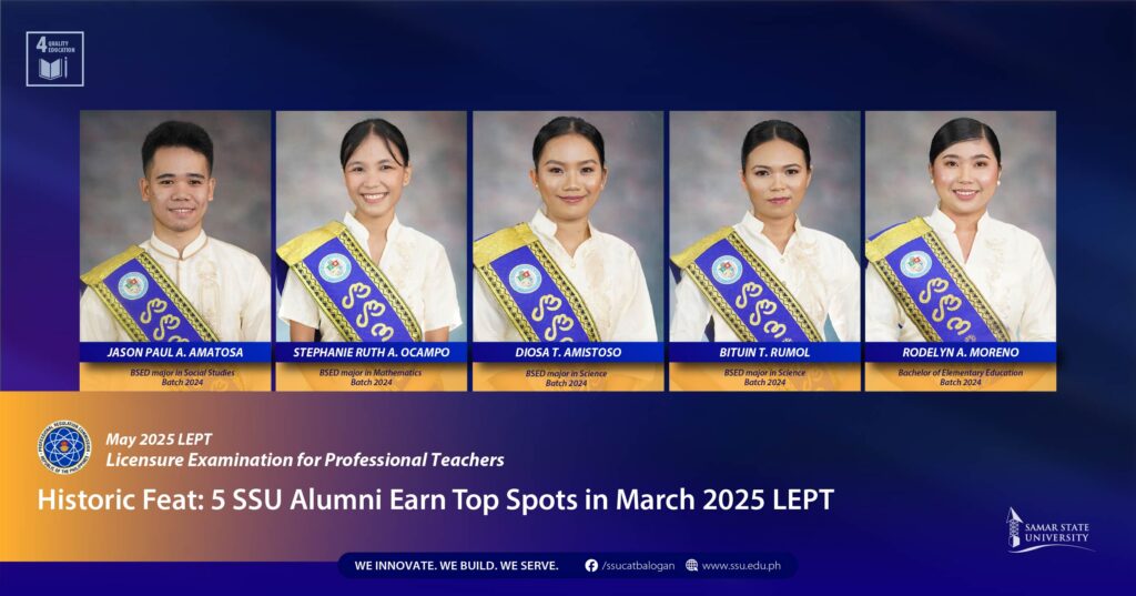Historic Feat: 5 SSU Alumni Earn Top Spots in March 2025 LEPT Leave a Comment / Academics, Administration, News, Students / Admin Historic Feat: 5 SSU Alumni Earn Top Spots in March 2025 LEPT Read More »