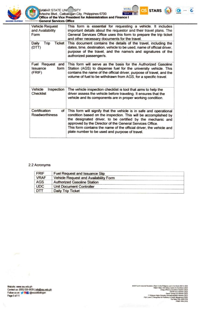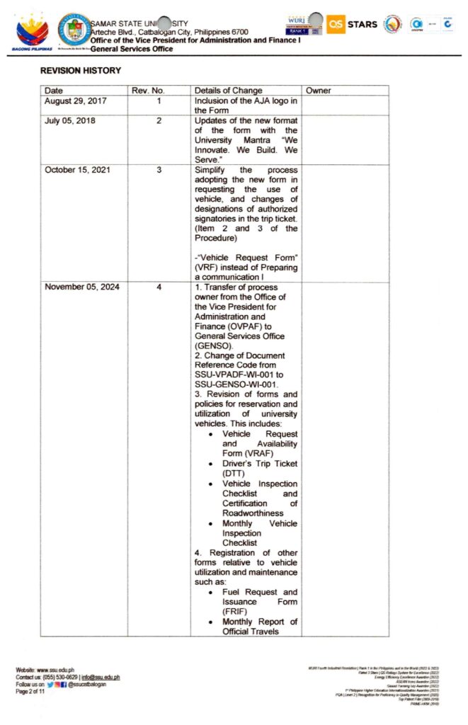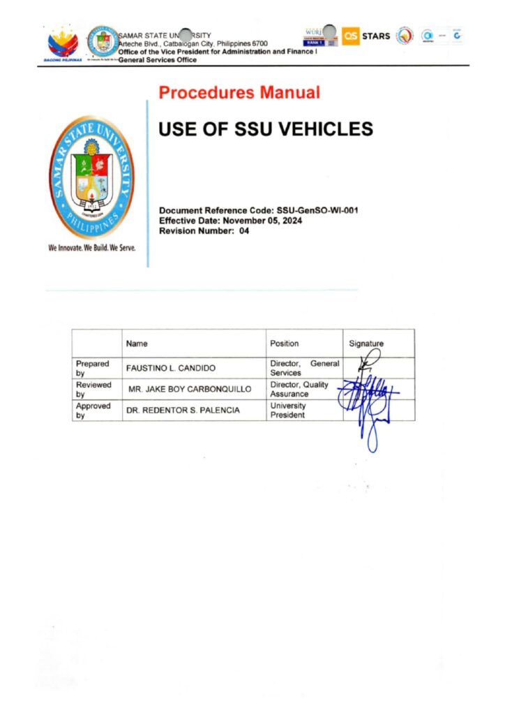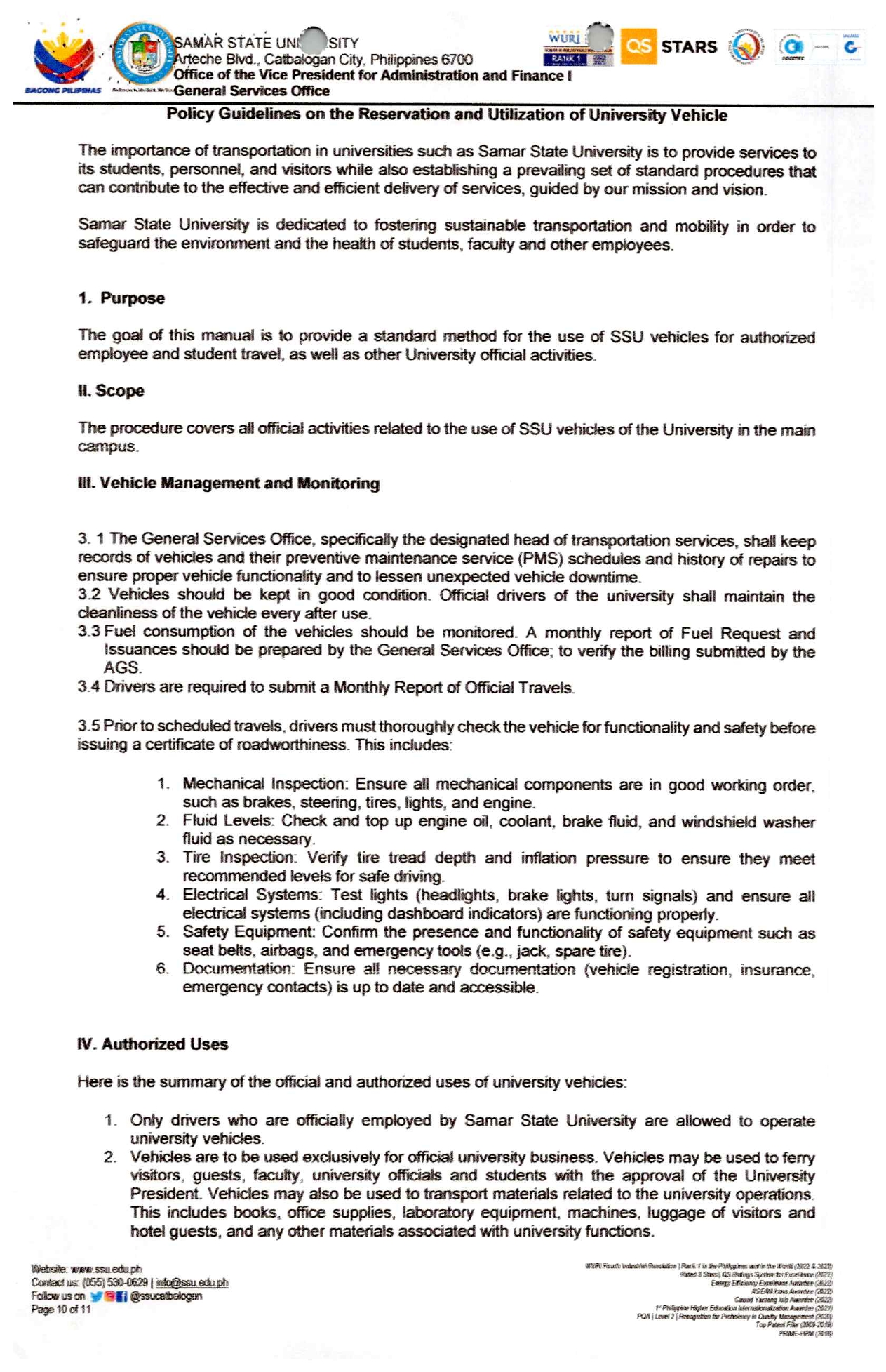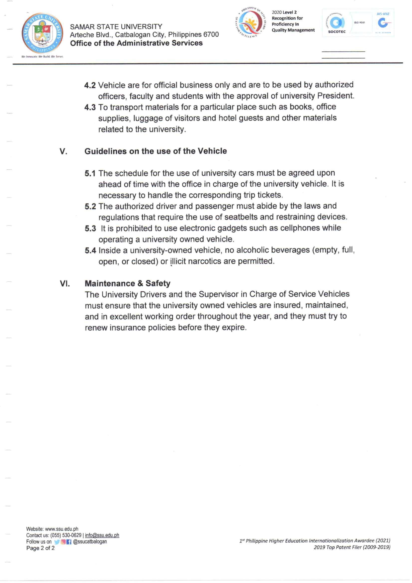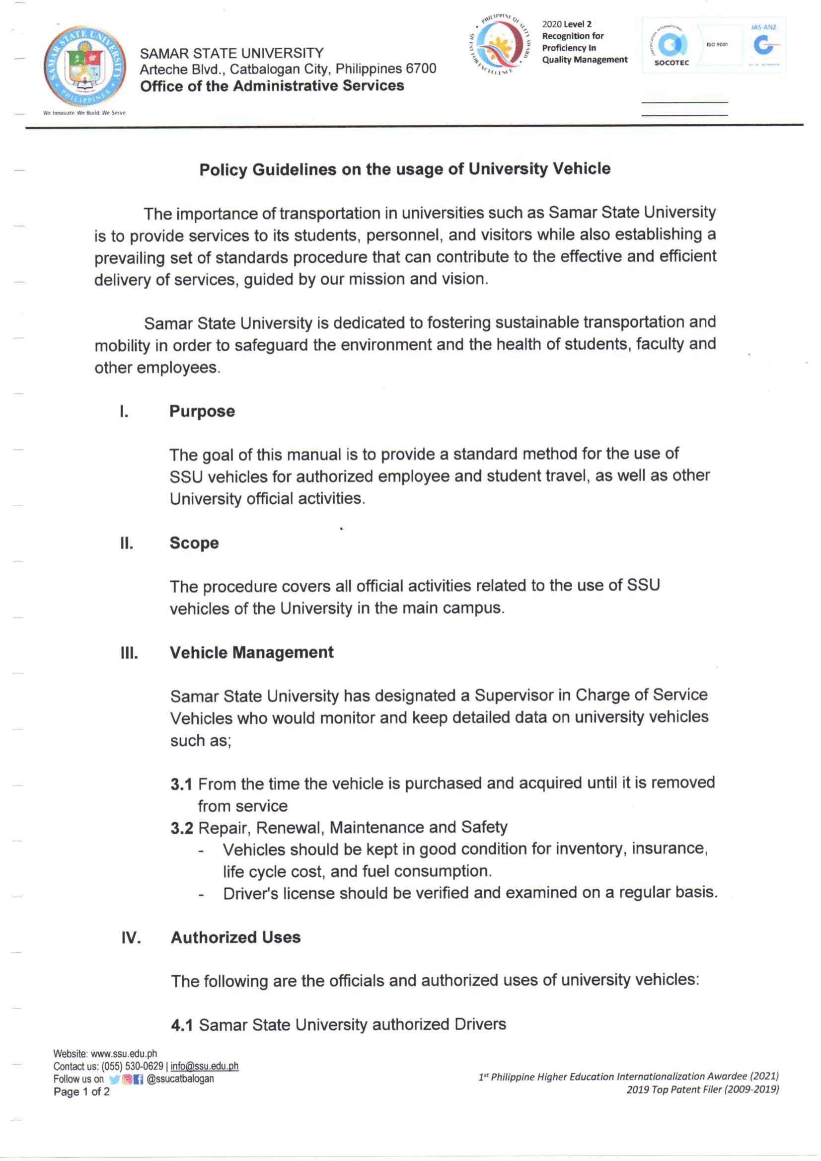 Policy Guidelines on the Usage of University Vehicle